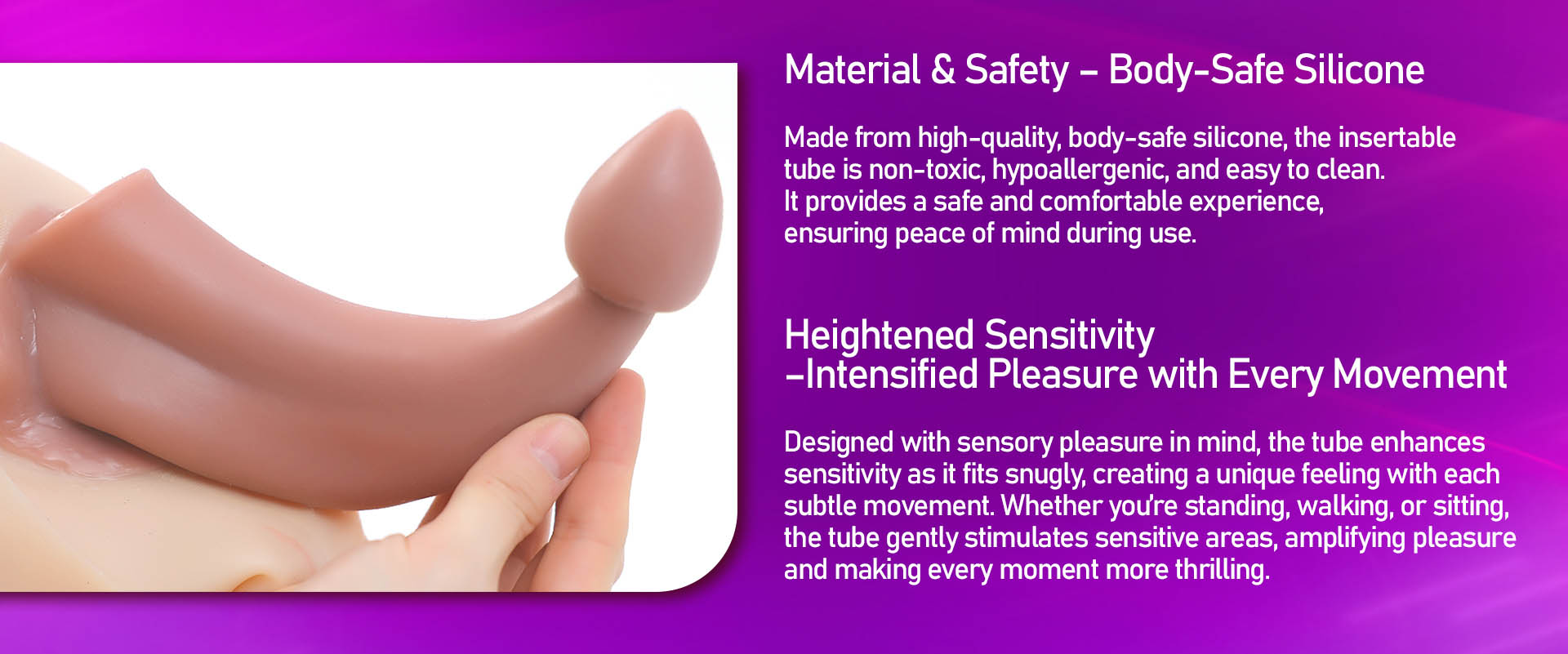 Made with soft, medical-grade silicone for a skin-like touch. Breathable and safe for long-term wear.