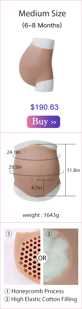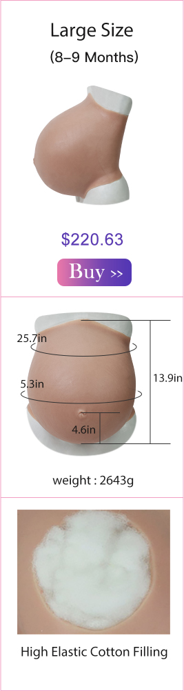 Roanyer'sfake pregnant bellies are carefully crafted to mimic the appearance of a pregnant belly, providing a realistic experience. They are available in different sizes and styles to represent various stages of pregnancy, allowing individuals to choose the specific look they desire. Some of the common stages and styles of fake pregnant bellies offered by Roanyer may include: