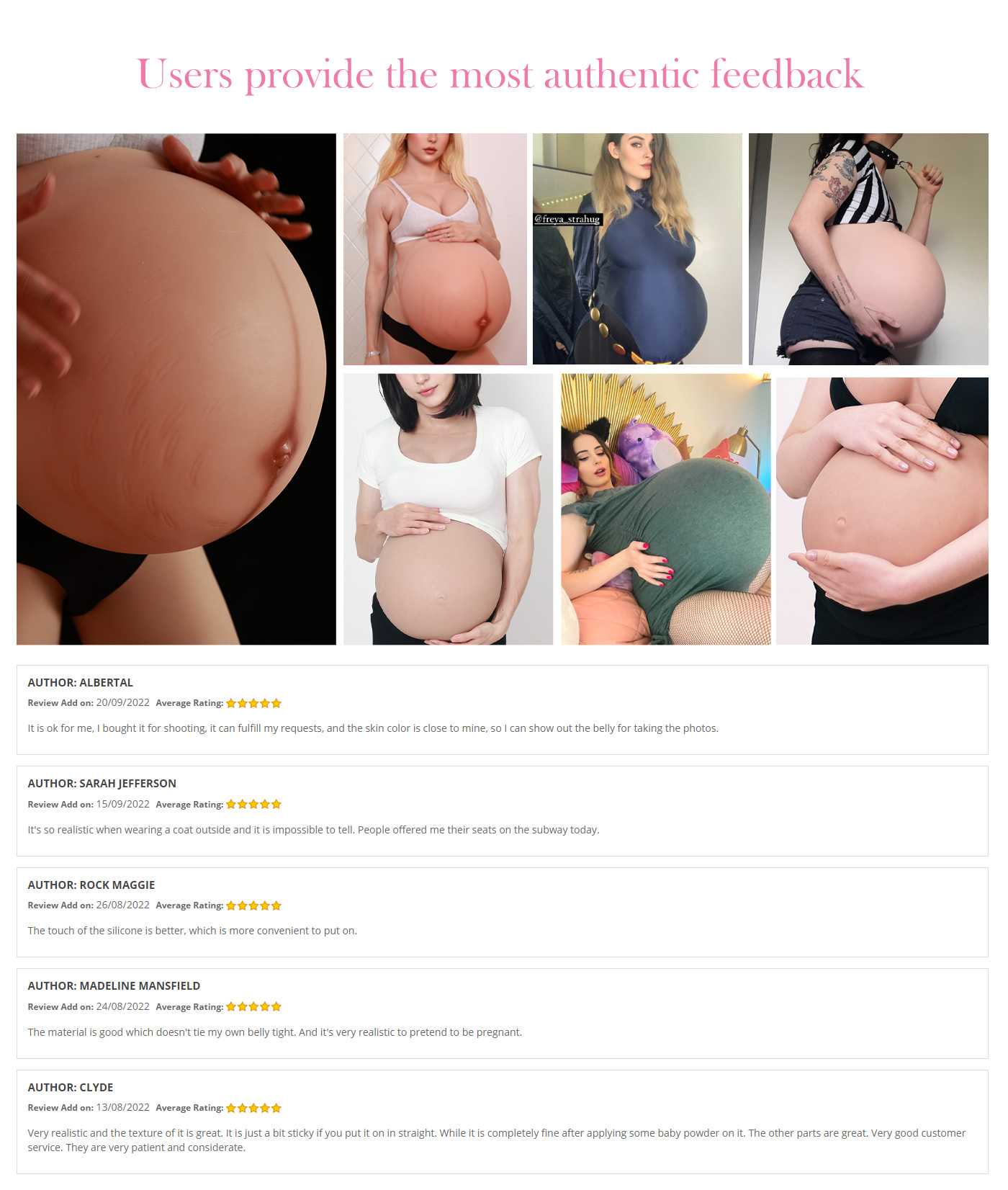 Feel free to share your thoughts on silicone pregnancy bellies with us, and we will take them into consideration for future product development.