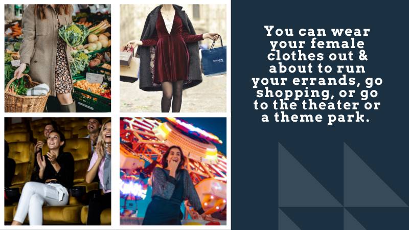As a crossdresser, you will find that your wardrobe can be used for more than just dressing up. You can wear your female clothes out and about to run your errands or even go shopping. Many women do this as well by wearing their everyday clothes on special occasions such as going to the theater or a theme park. This is a great way to get more use out of your clothes.