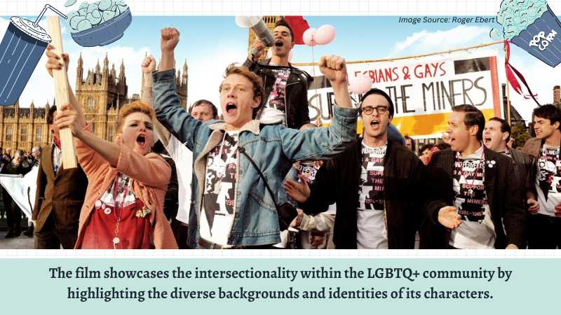 The film showcases the intersectionality within the LGBTQ+ community by highlighting the diverse backgrounds and identities of its characters.