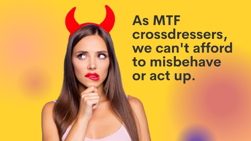 As MTF crossdressers, we can’t afford to misbehave or act up. We need to remember that we represent the opposite sex and should act accordingly.