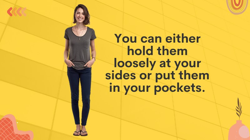 There are a few ways to keep your arms at your sides. You can either hold them loosely at your sides or put them in your pockets.