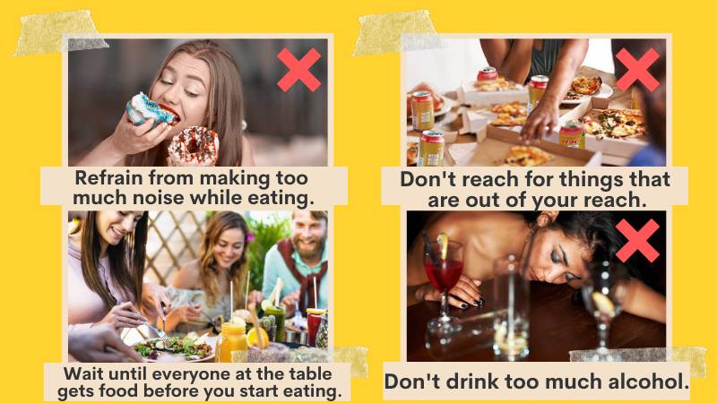 Fifth, refrain from making too much noise while eating.
