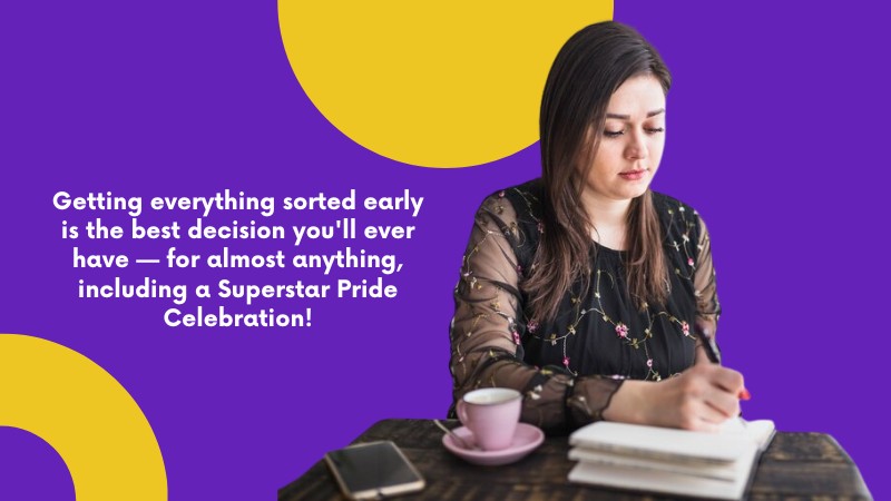 Getting everything sorted early is the best decision you’ll ever have — for almost anything, including a Superstar Pride Celebration!