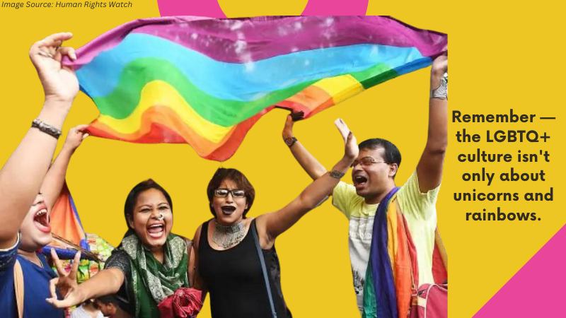 Remember — the LGBTQ+ culture isn’t only about unicorns and rainbows. This becomes even more important if you have not-very gay folks.