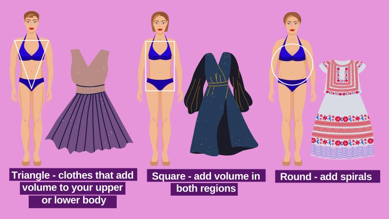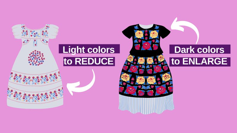 When selecting outfits, pay attention to the fabric and color as well. Thicker fabrics are useful to hide shapewear in a seamless way, while darker colors are going to thin your figure and outline your curves. You can also use color theory to balance your figure and look more feminine. To do so, use light colors to “reduce” and darker ones to “enlarge” parts of your body, aiming for an hourglass once again.