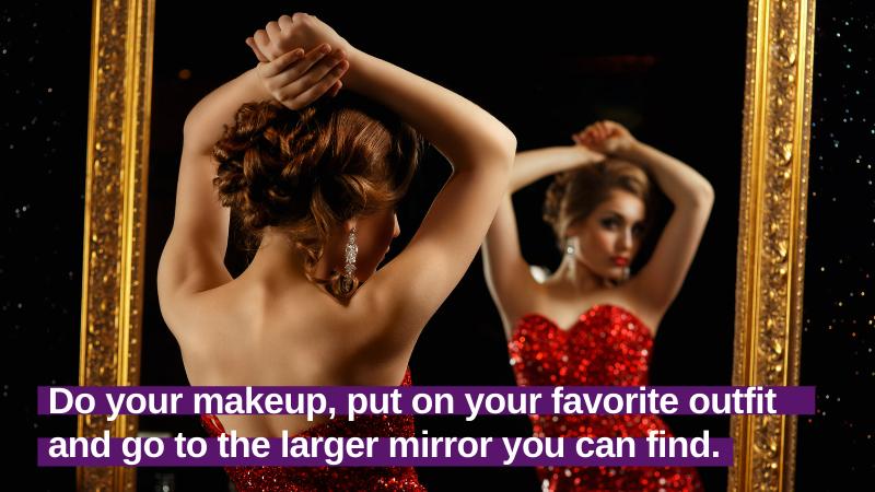 Do your makeup, put on your favorite outfit and go to the larger mirror you can find. Look at yourself and analyze your shape, then take some selfies and mirror pictures. You can show them to friends you trust, so they can give you feedback about your passability. If you want a more impartial opinion, try r/transpassing on Reddit or other crossdressing threads. If you choose to do so, make sure you don’t share NSFW or compromising pictures of yourself, as you can’t control their spread on the internet.