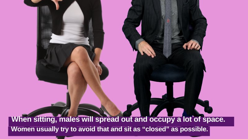 When sitting, males will spread out and occupy a lot of space. Women, on the other hand, usually try to avoid that and sit as “closed” as possible. Take this advice when standing up as well and try to look tall instead of wide. It works well to make you look more feminine most of the time. Also, keep your gestures in mind all the time. Being feminine means being more expressive than your male self, but don’t exaggerate. Try slow movements, keeping your shoulders back and elbows tucked. About facial expressions, smile more, do NOT avoid eye contact, and you should be fine.