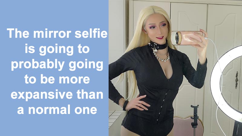 First of all, the mirror selfie will probably be more expensive than a normal one. It’ll be from your waist or belt line and up. This is a chance to try some different angles. Also, you’ll be able to get some cleavage in the photo or maybe just showcase some of your outfits. Most obviously, you will be using the forward-facing camera on your phone and, therefore, probably a higher-quality lens. It also means that your phone and your hand will likely be in the picture because of the wider framing you’ll need to use.
