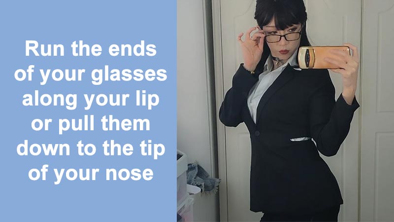 You can run the ends of your glasses along your lip or pull them down to the tip of your nose to create that sexy librarian look.
