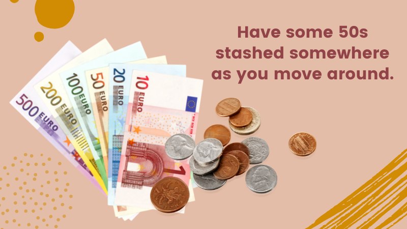 Have some 50s stashed somewhere as you move around—especially if you’re leaving your place for the night.