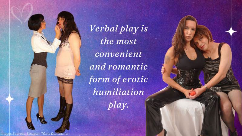 Verbal play is the most convenient and romantic form of erotic humiliation play.