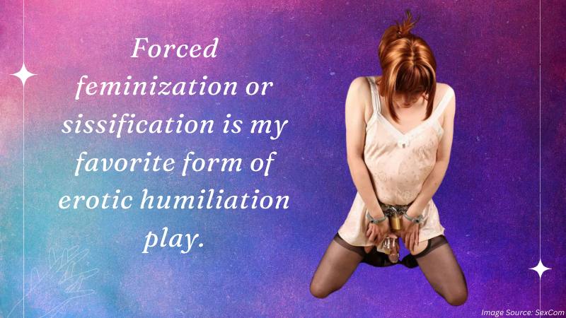 Forced feminization or sissification is my favorite form of erotic humiliation play.