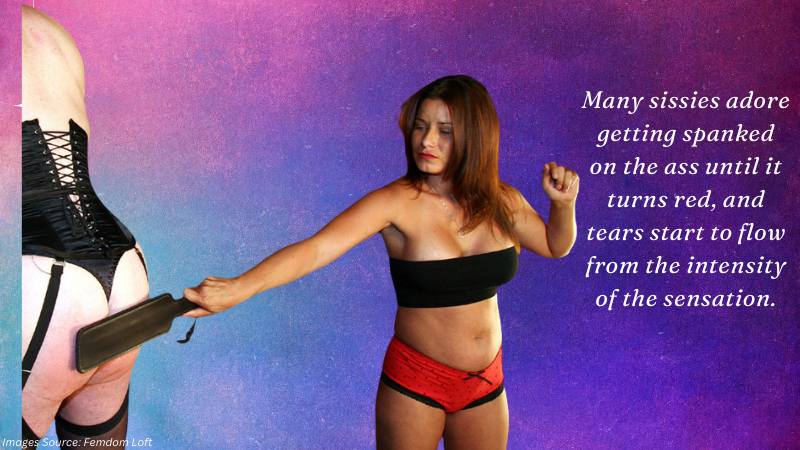 Many sissies adore getting spanked on the ass until it turns red, and tears start to flow from the intensity of the sensation.