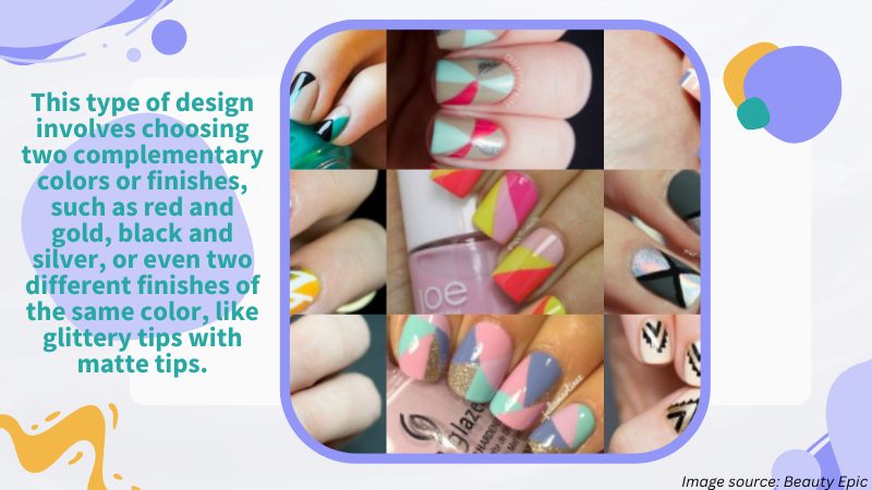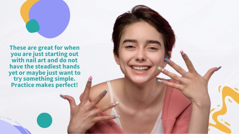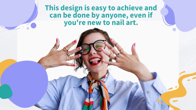 This creates a fun and playful look that can be achieved with minimal effort. The design can be done using any color combination. It can be further embellished with glitter, rhinestones, or other nail art accessories. This design can be a great way to add a touch of personality to your nails without overwhelming the overall look of your nails.