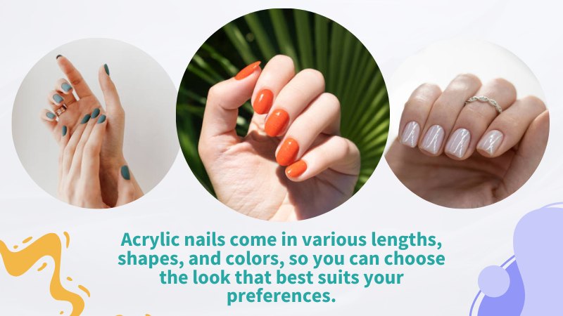Acrylic nails are a type of artificial nail that is applied over natural nails. They are typically made from a mixture of a liquid and powder that harden to form a solid, durable nail extension. This can be a great option for those who have trouble growing their nails or have nails that are prone to breaking. Acrylic nails come in various lengths, shapes, and colors, so you can choose the look that best suits your preferences.