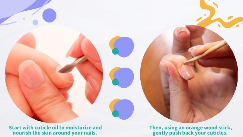 Before beginning your manicure, taking care of your nails is important to achieve a polished and shining appearance. This is especially important for those with short nails, as proper cuticle care and shaping can greatly enhance the look of your nails. Start with cuticle oil to moisturize and nourish the skin around your nails. Then, using an orange wood stick, gently push back your cuticles. This step not only makes your nails look more elegant but also helps prolong the life of your manicure. Regardless of the length of your nails, shaping them with a glass nail file can greatly improve their appearance. When it comes to short nails, a squoval or oval shape is a simple yet effective option. It’s important to ensure that all nails are the same length for a cohesive and balanced look.