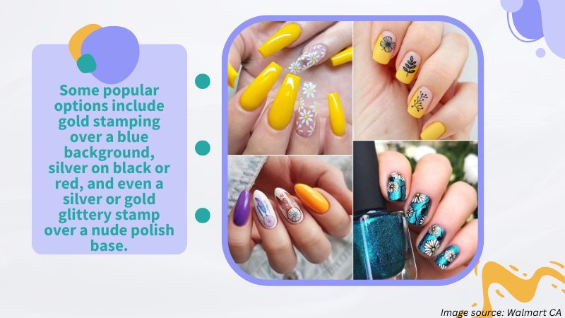 Many different combinations work well with short nails. Some popular options include gold stamping over a blue background, silver on black or red, and even a silver or gold glittery stamp over a nude polish base. To get started with geometric stamping, you will need some equipment, including a nail stamping kit.