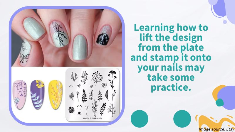These kits typically include one or more stamping plates, a stamper, and a scrapper (or you can use an old credit card). The design can be done using regular nail polish or gel polish and requires a special image plate and a stamping tool, which can be found in beauty supply stores or online. This design can be done at home with practice and patience. Learning how to lift the design from the plate and stamp it onto your nails may take some practice. Still, with a bit of patience and practice, you’ll be able to create salon-worthy designs on your own.