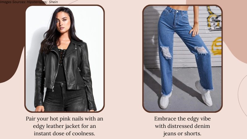 Edgy Leather Jacket: Pair your hot pink nails with an edgy leather jacket for an instant dose of coolness.