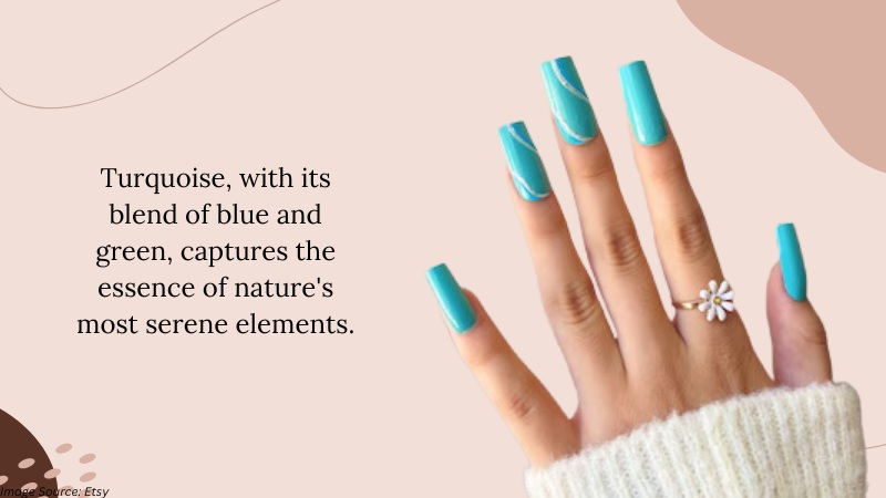 The turquoise nails will complement the beachy color palette and elevate your overall style.