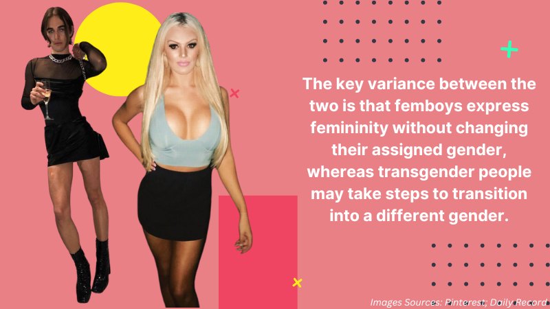 Femboys are boys who dress and act like girls, while transgender identifies as a different gender.