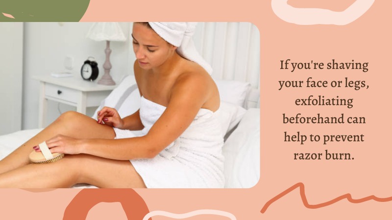 Exfoliation removes dead skin cells, which can make your skin look dull. It also helps to unclog pores, which can prevent breakouts. And if you’re shaving your face or legs, exfoliating beforehand can help to prevent razor burn.