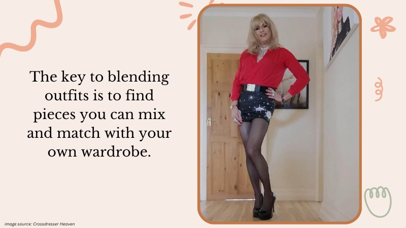 When you’re crossdressing, you don’t want to look like a drag queen. You want to look like the beautiful, feminine woman you are. The key to blending outfits is to find pieces you can mix and match with your wardrobe. Choose light colors like pink and purple, and add some jewelry with crystals or pearls if you want the look to be more formal. Remember, it’s all about balance! You want enough color in your outfit so it doesn’t look bland. However, if there’s too much color in one place, the eye will be drawn away from the rest of the outfit.
