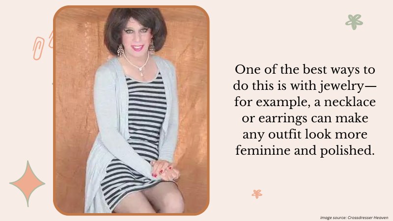 For example, if you have a fuller figure but want to appear slimmer when crossdressing, go for fitted clothing rather than loose-fitting items like dresses or skirts. If you have a round face shape but want to appear more angular or heart-shaped, try wearing tops with vertical stripes instead of horizontal ones.
