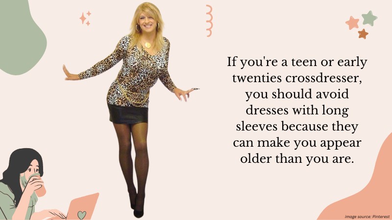 If you’re a teen or early twenties crossdresser, you should avoid dresses with long sleeves because they can make you appear older than you are. And if you’re in your late 20s and above, it’s appropriate to wear more revealing clothes when crossdressing.