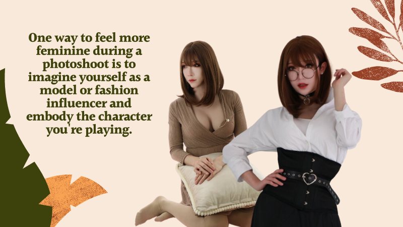 One way to feel more feminine during a photoshoot is to imagine yourself as a model or fashion influencer and embody the character you’re playing.