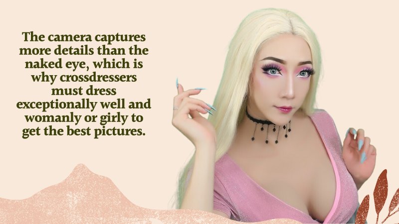 The camera captures more details than the naked eye, which is why crossdressers must dress exceptionally well and womanly or girly to get the best pictures. There can be no compromise when it comes to dressing up.