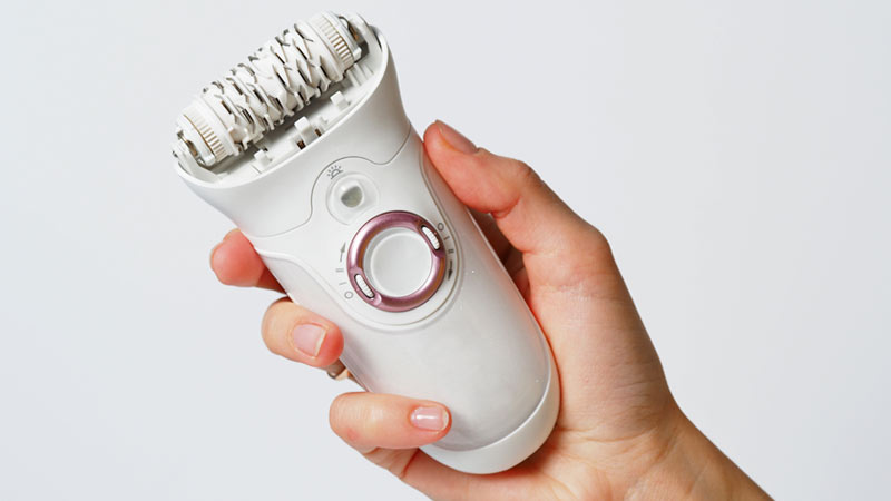 I then position my epilator at a 90-degree angle to my skin and hold it loosely against it.