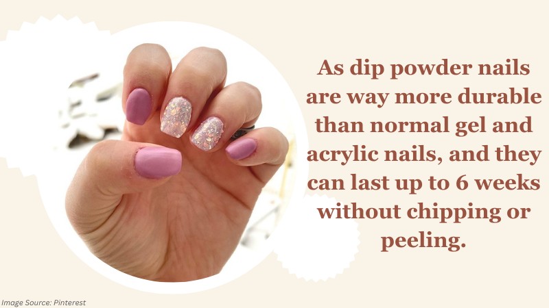 It’s the durability, girl, as dip powder nails are way more durable than normal gel and acrylic nails, and they can last up to 6 weeks without chipping or peeling.