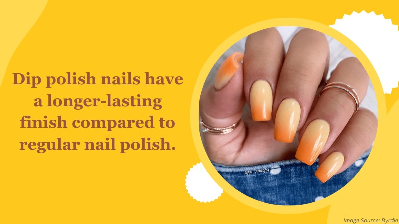 Dip polish nails have a longer-lasting finish compared to regular nail polish.