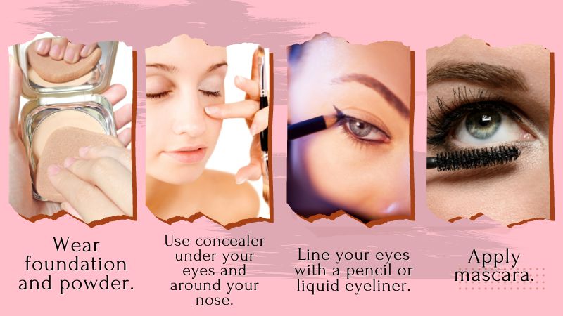 1) Wear foundation and powder to even out your skin tone and give yourself a smooth, flawless complexion.