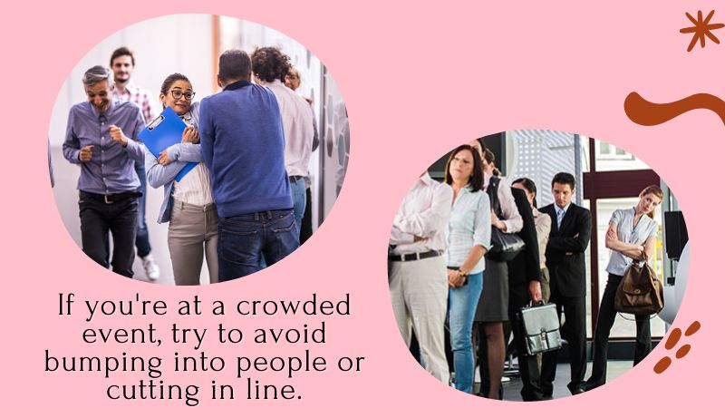 If you’re at a crowded event, try to avoid bumping into people or cutting in line.