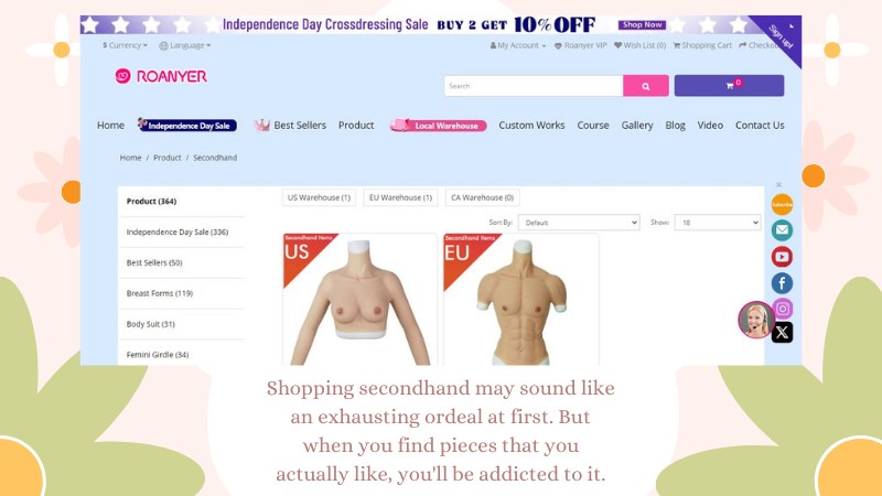 Let me tell you about one of my favorite brands that’s always so generous with these coupons and deals: Roanyer. It’s specifically for us MTF crossdressers and it always offers something new. So I always hang around its website to scoop the best promos!