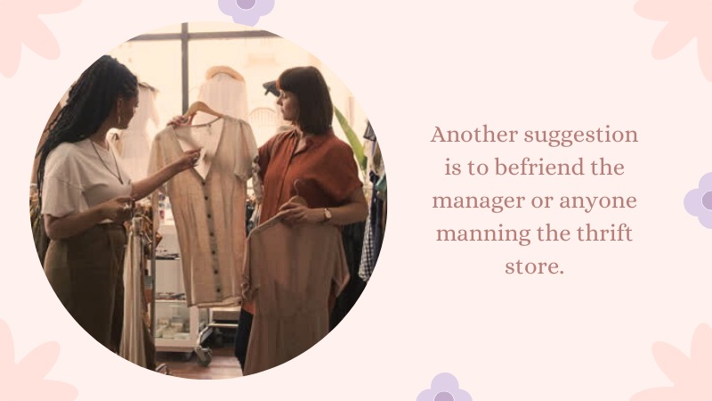 Another suggestion is to befriend the manager or anyone manning the thrift store. Find a good thrift shop with varying goods (that includes clothes, accessories, bags, and shoes). If you can see yourself coming back more than twice, try to make peace with the people there. More often than not (if they are as kind as you), they’ll give you more discounts and even notify you when they’ll get new items.