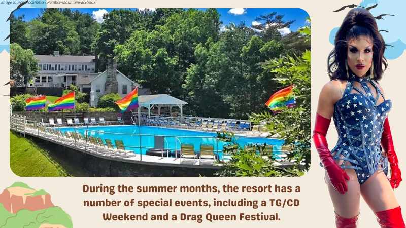 In the winter, a number of nearby mountains are outfitted for skiers. During the summer months, the resort has a number of special events, including a TG/CD Weekend and a Drag Queen Festival. You’ll be sure to find a supportive group of fellow travelers here.