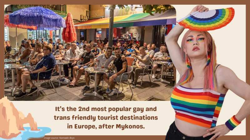 This whole beach town is orientated towards LGBTQ+ tourism; the lion’s share of the businesses in the town center cater to tourists. In addition to not having to worry about being judged by passers-by, the town itself is stunning. Get lost in the narrow, cobbled streets, but be sure to choose your footwear carefully. Cobble stones and heels don’t always go together.