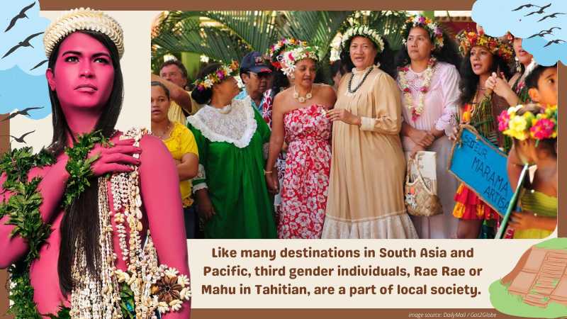 Aside from the unforgettable scenery, weather and accommodation, I’d like to make you aware of the gender blurring traditions of Polynesia. Like many destinations in South Asia and Pacific, third gender individuals, Rae Rae or Mahu in Tahitian, are a part of local society. Modern, western conceptions of crossdressing might not be very prevalent, but you can be sure that you won’t look or feel out of place in this tolerant and accepting culture.