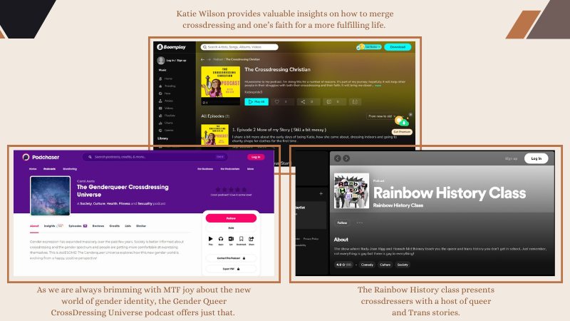 MTF and Trans podcasts play an invaluable role in promoting the Trans voice, which allows crossdressers to be authentic while having the freedom to share a lived experience.