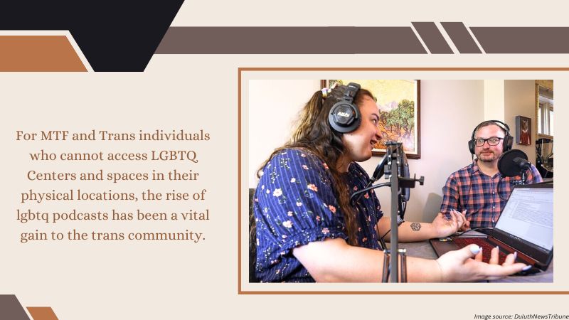For MTF and Trans individuals who cannot access LGBTQ Centers and spaces in their physical locations, the rise of lgbtq podcasts has been a vital gain to the trans community.