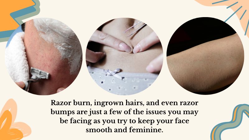 Razor burn, ingrown hairs, and even razor bumps are just a few of the issues you may be facing as you try to keep your face smooth and feminine. And then there’s the frustration of seeing a beard shadow after only a few hours—it can be hard to remember why you started shaving at all! But there’s good news! There is nothing you can do about your beard growing. But there are things you can do to keep it soft, smooth, and feminine-looking.