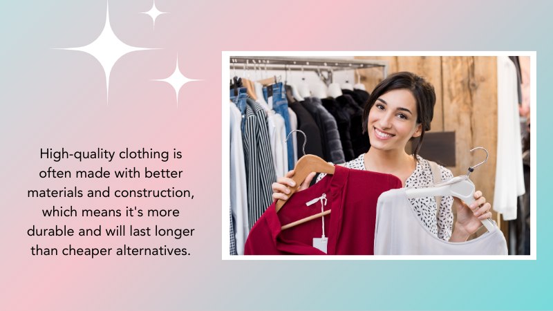 High-quality clothing is often made with better materials and construction, which means it’s more durable and will last longer than cheaper alternatives. This means you won’t have to replace your clothes as often, which saves you money in the long run.