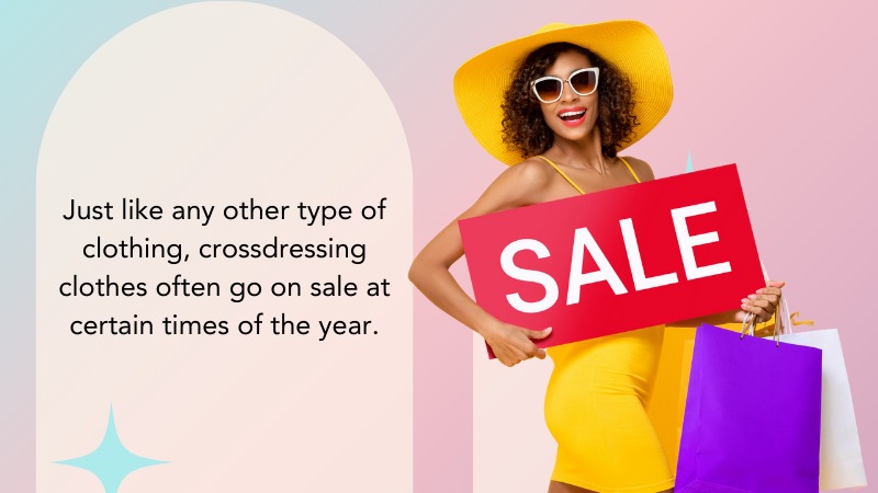 Another great tip to save money on crossdressing clothes is to buy them at the right time. Just like any other type of clothing, crossdressing clothes often go on sale at certain times of the year.