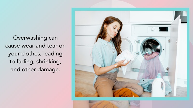 Instead, try spot-cleaning stains or using odor-eliminating sprays between washes. You can also rotate your clothing items to allow them to air out and reduce the need for frequent washing.