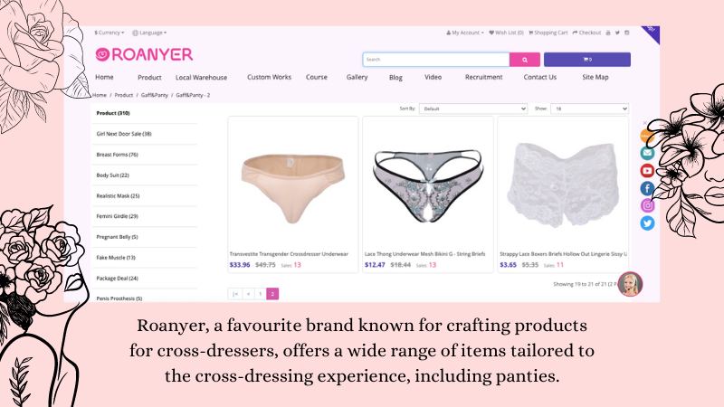 Roanyer, a favourite brand known for crafting products for cross-dressers, offers a wide range of items tailored to the cross-dressing experience, including panties.